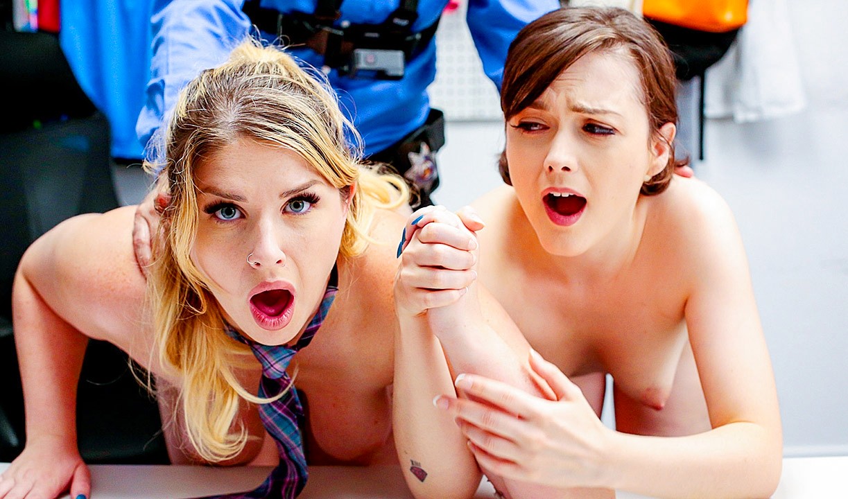 Народная примета гласит, что если ты сильно стремаешься тырить по магазинам, то это до хорошего не доведет, как не доводит оно и эту парочку студенток колледжа. Девушки палятся пер службой охраны и очень скором то просто отпускает хулиганок, пригрозив им третьей статьей ихнего УК. Вот только за это им пришлось потрахаться не только с охранником, но и друг с другом.