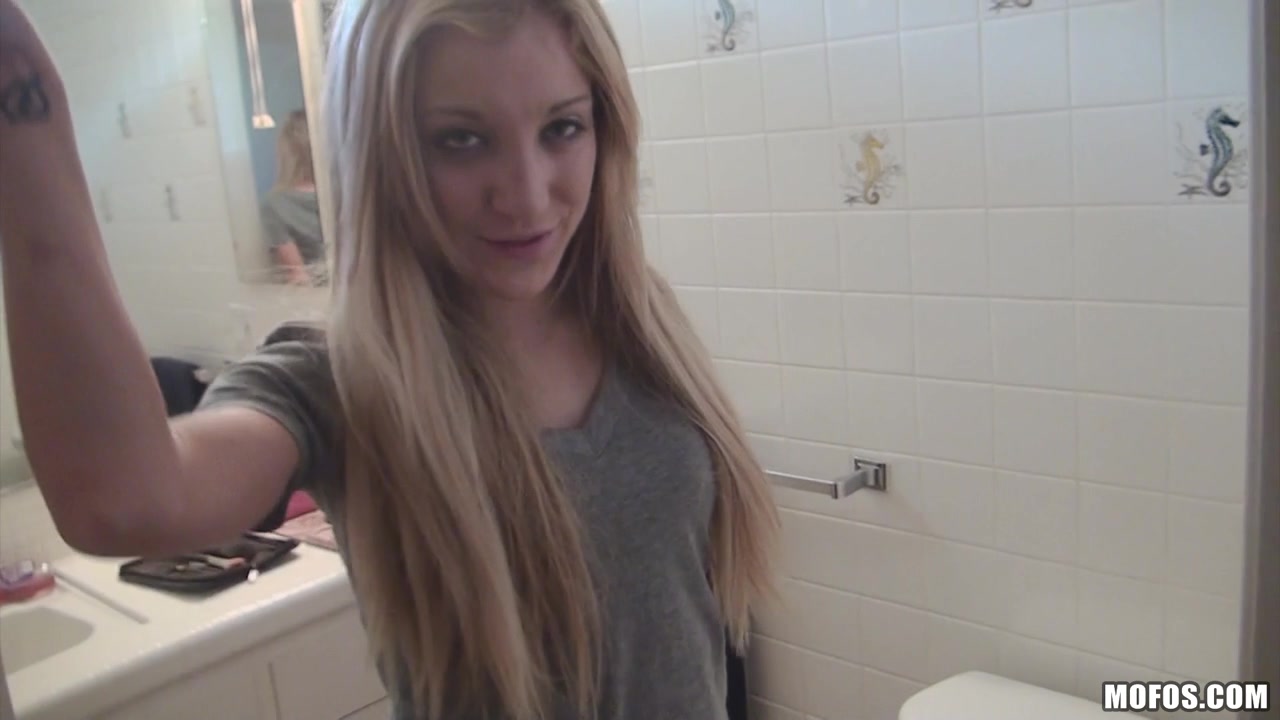 Новый ухажер трахает грудастую блондинку в ванной со свистом