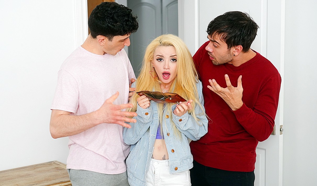 Симпатичная сводная сестра сильно нуждается в деньгах. Но просить бабки она просто не привыкла и потому прибегнув к воровству, она стала жертвой своих сводных братьев, надеясь облегчить свое финансовое положение... Ну а раз девушка впорола косяк, то и решать проблемы она будет сама с помощью двух больших членов братцев. Опыт секса у девушки есть и немаленький, так что все будет хорошо!