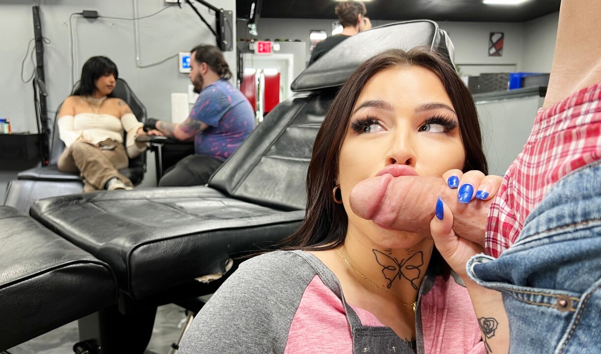Вполне себе симпатичная брюнетка приходит на студию, чтобы сделать тату. Но мастер потихоньку возбуждает клиентку и потихоньку трахает ее в укромном уголке, хотя помещение заполнено народом. Определенно это палево, но зато адреналина по самые уши.