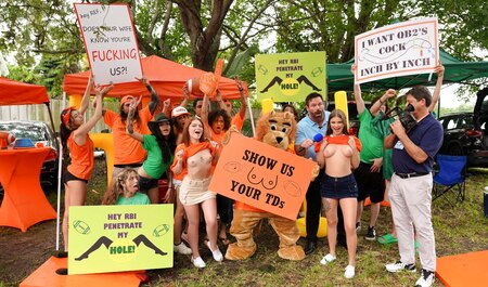 Студенты и прочие студентки всегда рады развеяться и отдохнуть от учебы где-нибудь на свежем воздухе и дикой природе. Ну и если девушки поначалу трясут сиськами и показывают голые попы, то позже сосут члены старшим товарищам, чтобы затем еще и потрахаться с ними. Ну и правильно - ведь отдых должен быть разносторонний!